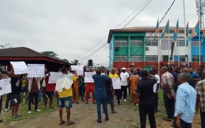 Updated: Protesters lock C’River APC state secretariat, vow not to unlock it until Barr. Alphonsus Eba resigns